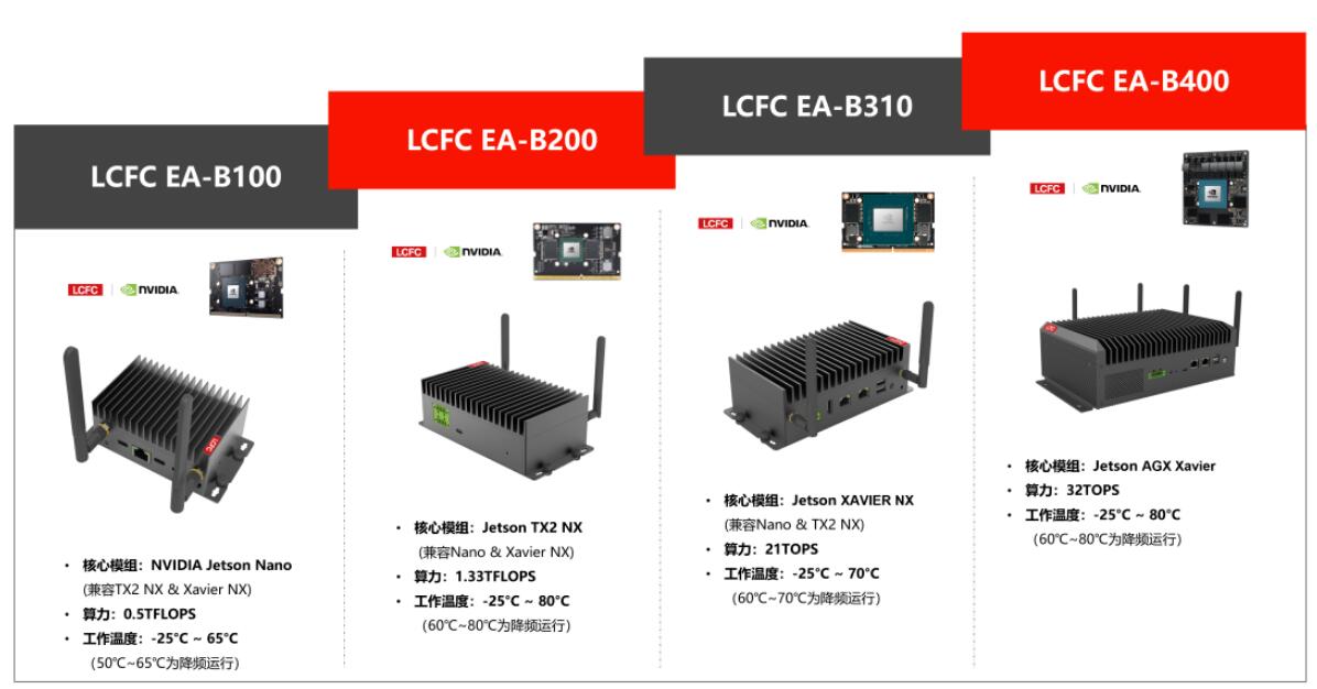 根据场景复杂程度和不同算力需求,联宝科技为集装箱智能识别系统提供了多款专注现场应用的边缘智能终端产品,包含EA-B100、EA-B200、EA-B310及EA-B400,用于系统前端嵌入式视频分析和服务后端数据储存。伴随內载Jetson系列核心模组的演进,联宝科技边缘智能终端系列产品的性能也在逐款提高。不同产品满足不同算力需求,可支持各种智能识别系统低时延完成货运信息的精准过滤和分析。