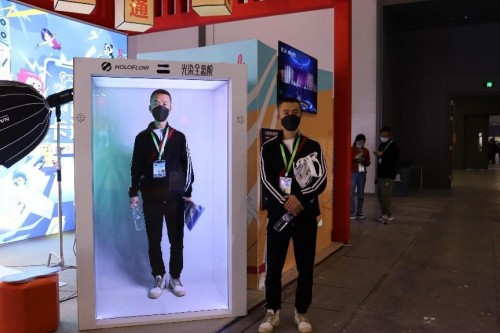 光染全息舱能真实的还原人和物体的立体效果,使用者无需佩戴3D眼镜等设备,即可身临其境“看”到逼真的全息形象。漫展现场,观众站在拍摄区摆出自己喜欢的动作,通过光染智能采集设备,光染全息舱通过人工智能云端渲染和光场处理,全息舱中就能立马还原出1∶1等大的人像,非常逼真高清,吸引了许多观众争相体验,其中不乏参展人员,媒体记者,Coser,小朋友家长和国际友人。特别是对于小朋友来说,屏幕中一模一样的自己让他们在屏幕前激动徘徊,久久不愿离去。