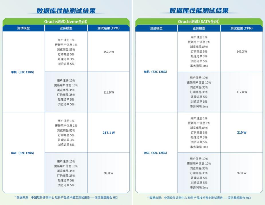 Nvme全闪环境中,业务系统模型测试超过217万TPM!SATA全闪环境中,业务系统模型测试超过210万TPM。
