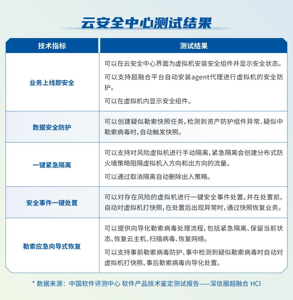 本次测试,信服云超融合在虚拟存储IO性能测试、数据库测试、可靠性及安全性上有着尤为突出的表现。