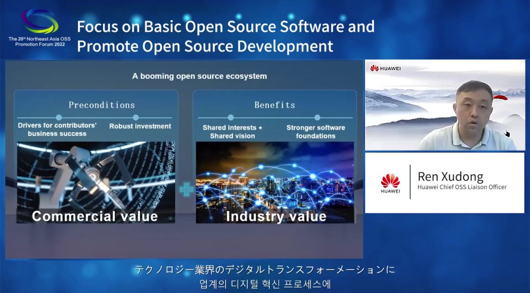 聚焦开源发展的新技术、新模式、新应用和未来演进趋势,中日韩三国企业、机构、科研高校的代表在论坛上发表了精彩的主题演讲。以中国的开放原子开源基金会、华为、小米、IBM,日本的SRA、日立、索尼、NEC,韩国的LINE、OpenStack、Team-UNDER5、韩国国民大学等为代表的中日韩开源软件企业、机构、科研高校共同就技术发展、项目应用、社区建设、教育培训、供应链构建等开源领域相关问题进行了深入探讨。
