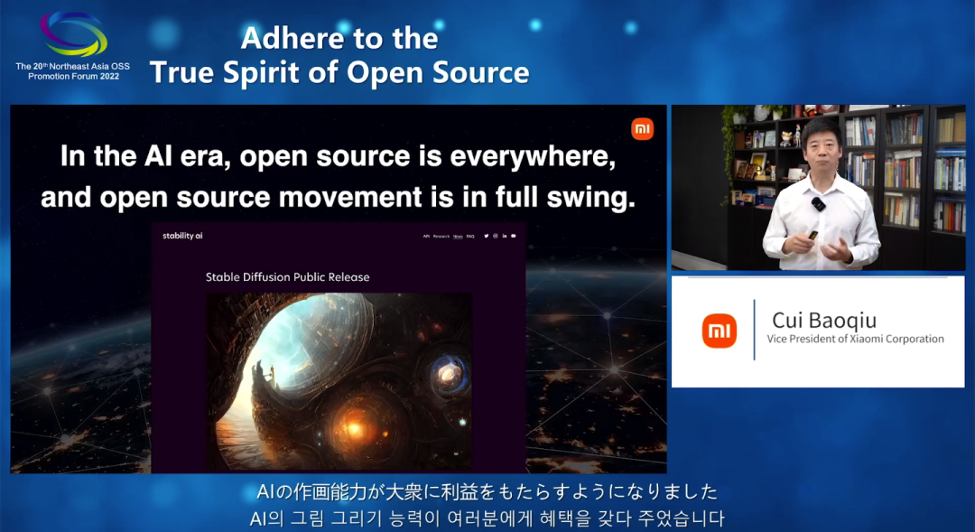 小米集团副总裁崔宝秋以《回归开源本质》为主题进行了演讲,他表示,近年来,伴随着开源运动的持续火热,一些对于开源的错误认知开始出现,并阻碍了开源运动的进一步发展,我们应当重新思考并回归开源的本质——开放、共享、平等、协作、创新,切实践行其背后更深层次的理念——利他主义和长期主义,将开源打造成为人类技术进步的平台与模式,让开源惠及更多人群、更多领域。