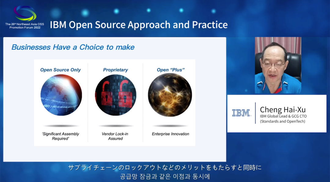 IBM全球兼大中华区首席技术官程海旭带来了以《IBM开源之道和实践》为主题的演讲,他表示,开源是全球开发者共同参与和贡献的一种技术交流和创新方式,作为开源的贡献者和使用者,IBM积极推动开源发展,同时也非常重视管理开源的风险,拥有完整的开源管理机制、流程和工具,也期待与OpenSSF、行业合作伙伴和开源社区合作,共同应对硬件和软件开源供应链安全日益严峻的挑战。