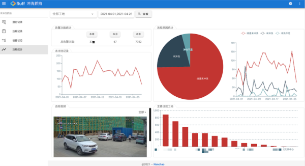 自2019年初Ruff南潮物联正式推出智慧工地车辆未冲洗抓拍产品后,该产品先后在分布全国各地的1000+工地上实施投入使用,帮助施工方更高效科学的实现工地的数字化管理,助力智慧城市建设,同时,也满足了政府监督、集团管控、项目管理等智慧工地的场景需求。