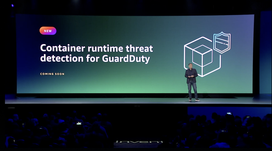 Amazon GuardDuty 这样一个组件就具有检测并且响应安全威胁的功能。在演讲中 Adam 正式宣布了 Container runtime threat detection for GuardDuty。更新版的 GuardDuty 能检测容器内部可能存在的安全风险,识别那些试图访问控制节点的的操作,支持与 Amazon EKS 集成。