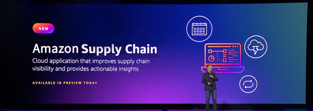 除此之外,Adam 还宣布推出客户期待已久的供应链解决方案 Amazon Supply Chain。“许多亚马逊云科技的客户问我们,我们是否愿意采用亚马逊供应链技术、亚马逊云科技基础设施和机器学习来帮助他们解决供应链问题。” Amazon Supply Chain 是一个基于云的新应用程序,可帮助供应链领导者减轻风险并降低成本,以提高供应链弹性。Amazon Supply Chain 统一了供应链数据,提供了基于 ML 的可操作见解,并提供了内置的上下文协作,所有这些都有助于用户通过减少缺货来提高客户服务水平,同时帮助降低积压成本。