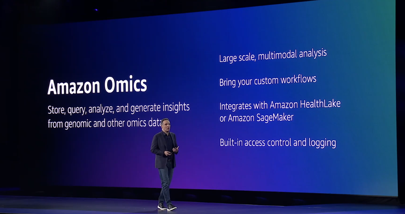 在生物医疗领域,Adam 正式宣布了 Amazon Omics,帮助用户存储、查询、分析基因组数据并从中生成见解。Amazon Omics 通过几次的点击就可以进行相关的科学分析,Amazon Omics 有各种各样的功能,也是一个安全的环境,并且符合相关的监管规定。我们用 Amazon Omics 来帮助我们更有目标地针对某一种疾病进行研究。