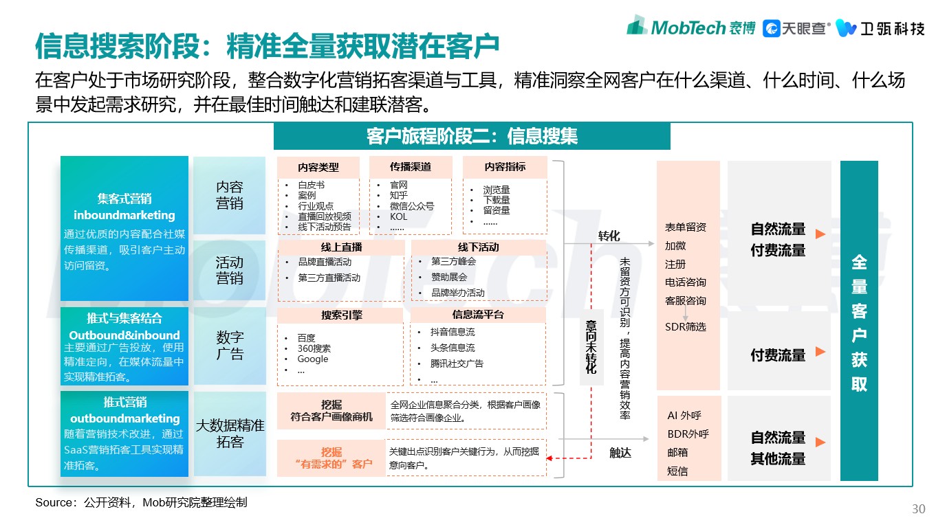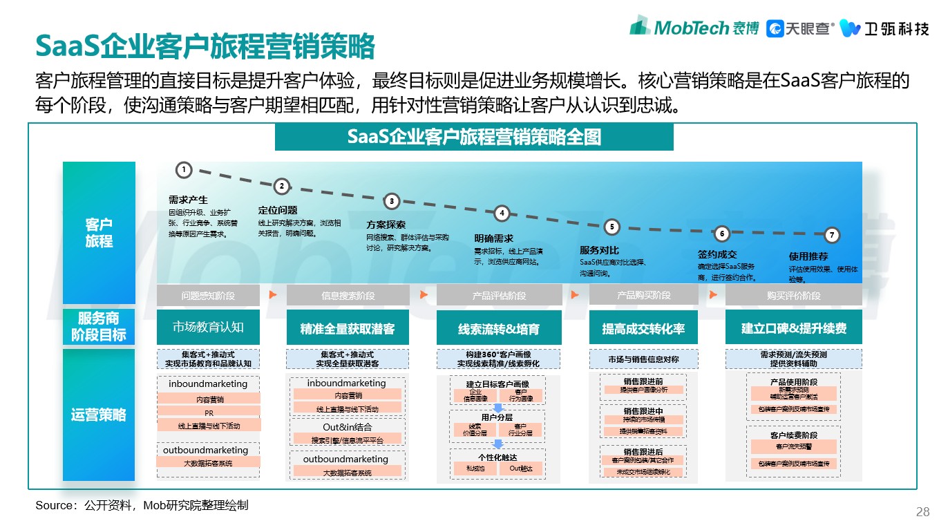 其中,大数据拓客软件、商业查询平台、营销自动化工具、直播软件和SCRM系统等已经成为SaaS企业获客链路中必不可少的数字化营销工具。近期,全球领先的数据智能科技平台MobTech袤博科技联合天眼查、卫瓴科技共同发布《2022年企业级SaaS数字化营销获客白皮书》,本期白皮书聚焦于企业数字化营销方向,阐述目前SaaS企业营销获客的现状及未来发展趋势,剖析SaaS企业数字化营销获客的关键步骤,根据客户旅程营销策略进行深度解析,为广大SaaS企业精准获客提供切实可行的路径。
