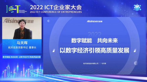 航天信息党委书记、董事长马天晖结合航天信息的探索和实践,分享了数字赋能经济高质量发展的思考和倡议。她谈道,回望新时代十年的伟大变革,我国数字产业蓬勃发展,数字经济展现出强大的活力和韧性,大量新业态新模式快速涌现。在当前时代之变和世纪疫情相互叠加的背景下,世界经济复苏面临各种挑战,我国经济如何保持良好的发展势头是我们必须回答的紧迫课题。“作为ICT企业,应贯彻落实党中央系列决策部署,坚持问题导向、目标导向,秉持多方共建、资源共享、融合共生、互利共赢的发展原则,携手构建数字产业生态,共创数字经济发展新辉煌。”她表示。