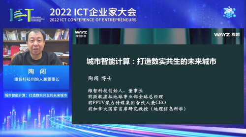 维智科技创始人兼董事长陶闯介绍了城市智能计算在未来城市打造中的重要作用。他表示:“城市是最大、最复杂但最具有商业价值的场景,涵盖城市治理、交通规划、产业经济、生活民生、物流快递和教育医疗,数字城市发展包括感知、计算和体验三个阶段。”同时,他以维智科技的飞吉特城市智能计算平台为例,对城市智能计算作了详细介绍。