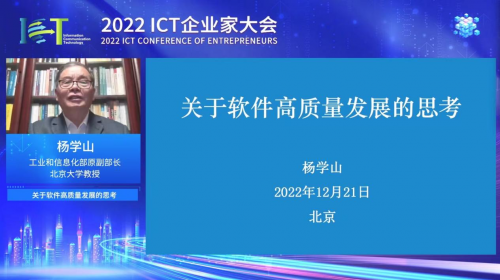 北京大学教授、工业和信息化部原副部长杨学山以《关于软件高质量发展的思考》为题发表了主旨报告。他表示,当前,软件产业还存在新需求不能满足、供应链安全不能保证、软件企业集中度不足等问题。软件的高质量发展体现在供给能力、创新能力、盈利能力、可持续能力几个方面。我们要以满足需求的产品为中心,以能做大、做好、做强、可持续发展的企业为中心,以培养能解决问题的人才为中心,以有效的产用结合为中心,全方位助力软件产业高质量发展。