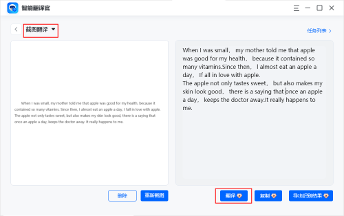 系统便会自动识别文字,接着点击【翻译】按钮,就能快速得到翻译结果啦。