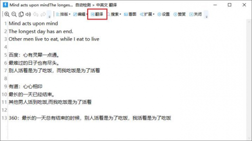 而且会提供百度、有道、360等多个平台的翻译结果,在每个翻译结果前面都会标注翻译来自哪个平台,大家可以自己选择翻译最准确的一个进行复制。