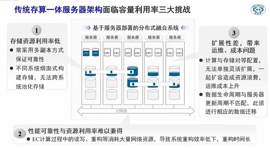 (传统存算一体服务器架构面临容量利用率三大挑战。图片来源:CCF)