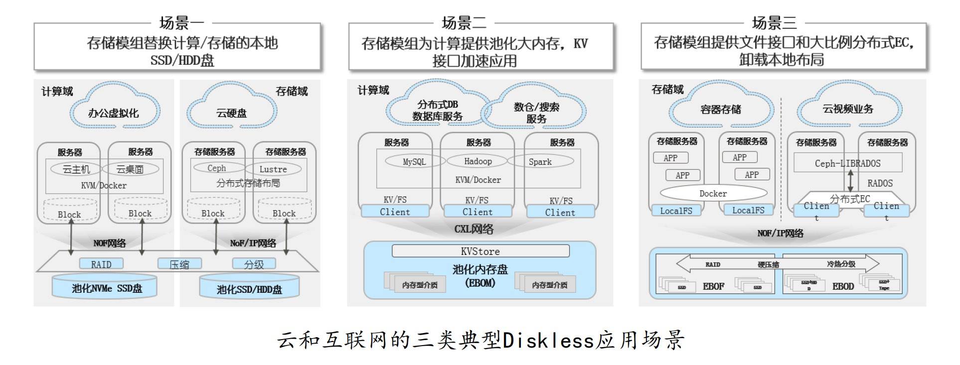 (云和互联网的三类典型Diskless应用场景。图片来源:《数据中心Diskless架构白皮书》)