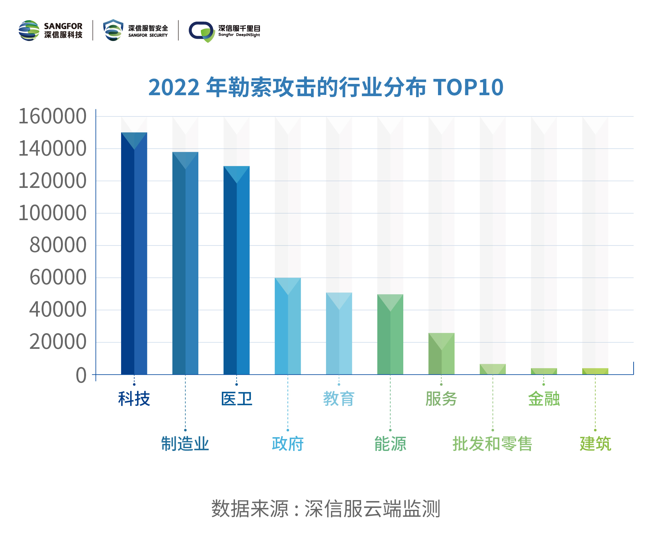 根据深信服云端监测,2022年全网遭受勒索攻击高达3583万次,与去年相比增加了1300+万次。