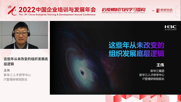 在随后进行的“中国企业培训与发展(线上)年会”上,众多人才发展领域的专家和从业者齐聚一堂,针对新时代人才培养问题展开深入讨论。中国企业培训与发展年会是人才发展领域颇具影响力的行业盛会,本届线上年会打破了原本的时空局限,是随时代发展的全新突破。新华三人才研学中心IT管理研修院院长王伟围绕“人才培养和行业发展”发表观点。他认为,虽然当前行业内外部环境发生了深刻变化,但是组织发展的底层逻辑并未改变。