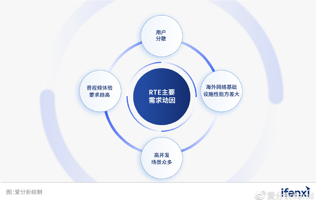 其次,全球疫情常态化,用户线上交流互动需求和习惯进一步固化,尤其是在教育、社交、直播、游戏、会议等领域,用户对实时互动的需求持续增加,RTE相关的底层技术成为企业向用户提供优质体验的重要“基础设施”。一方面,对于游戏或直播等业务场景来说,很容易出现流量暴增导致网络拥堵,致使用户端出现访问速度慢、卡顿等现象,也容易出现音视频不清晰、画面卡顿模糊、噪音众多等问题,客户体验容易受到较大影响,易造成客户流失,影响企业的海外品牌形象及口碑,制约业务开展。另一方面,海外很多区域的网络基础设施并不像国内一样稳定、完善,容易出现弱网现象,对音视频实时传输影响较大。因此,甲方需要强大的RTE技术来保障自身海外业务的高连通、高质量、稳定体验。