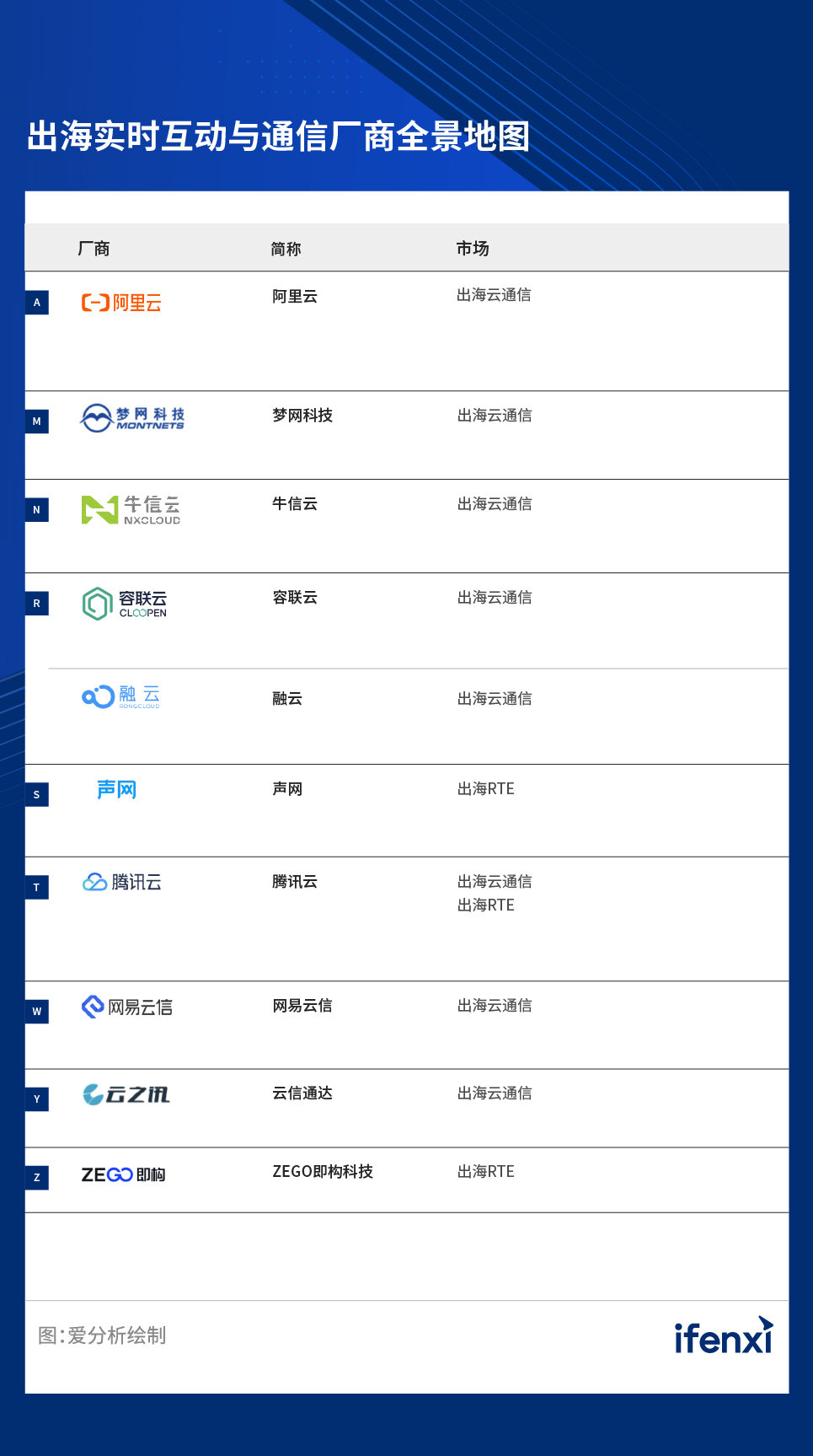 爱分析对本次出海实时互动与通信项目重点研究的特定市场定义如下。同时,针对参与此次报告的部分代表厂商,爱分析撰写了厂商能力评估。