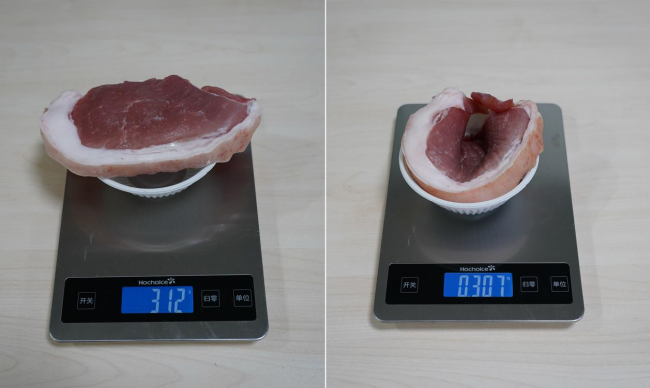 前后对比:容声WILL无边界系列605冰箱中的猪肉