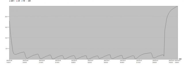 为了直观了解容声WILL无边界系列605冰箱的储鲜性能,我们对其进行了多轮测试,首先我们借助专业RC-4温度测试记录仪对这款冰箱的控温效果进行了了解。