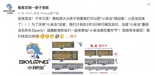 小呆虫真正把原来动辄上千元的客制化键盘,进一步下放到百元价位,为年轻人实现第一把 " 客制化 " 键盘。最近,小呆虫为了庆祝达成夺回 " 小呆虫 " 中文商标的里程碑,小呆虫将在 3 月 3 日开启名为 " 疯狂套件节 " 的 " 生日 party",用超值福利回馈粉丝支持,诚邀键盘玩家体验客制化的乐趣。