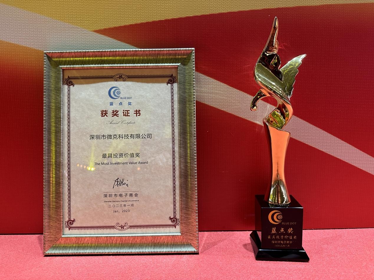 微克科技此次获得蓝点奖”最具投资价值奖”,是继通过”国家高新技术企业认证”、”广东省专精特新中小企业”及”国家级专精特新小巨人企业”认证之后再次斩获的重磅品牌类奖项,这是对微克科技研发水平、创新能力、经营管理及综合实力等多方面的认可,也是对微克科技多年来坚持自主创新、始终保持市场竞争优势的肯定。