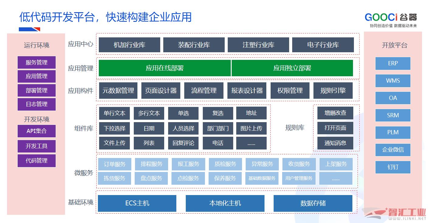 低代码模式的引入,使搭建者可以根据个性化需求,通过页面编辑器上的元素、样式、组件自由编辑页面;同时系统自带的成熟的页面模板,搭建者可先调用,再根据需求微调;页面构建引擎不仅可以通过拖拉拽操作编辑前端页面,还可以通过局部代码编辑,修改整个页面的属性和页面构建规则。通过拖拉拽配置式操作即可快速构建出能各类智能管理系统,人人皆可入门,人人皆可操作,减少海量企业开发工作量,节省数字化转型的时间与成本。谷器数据通过“SaaS+低代码”的模式,经过多年的践行推广,得到市场反复验证,作为新的数字转型范式,为制造业高端化、智能化、绿色化升级提供可靠路径。