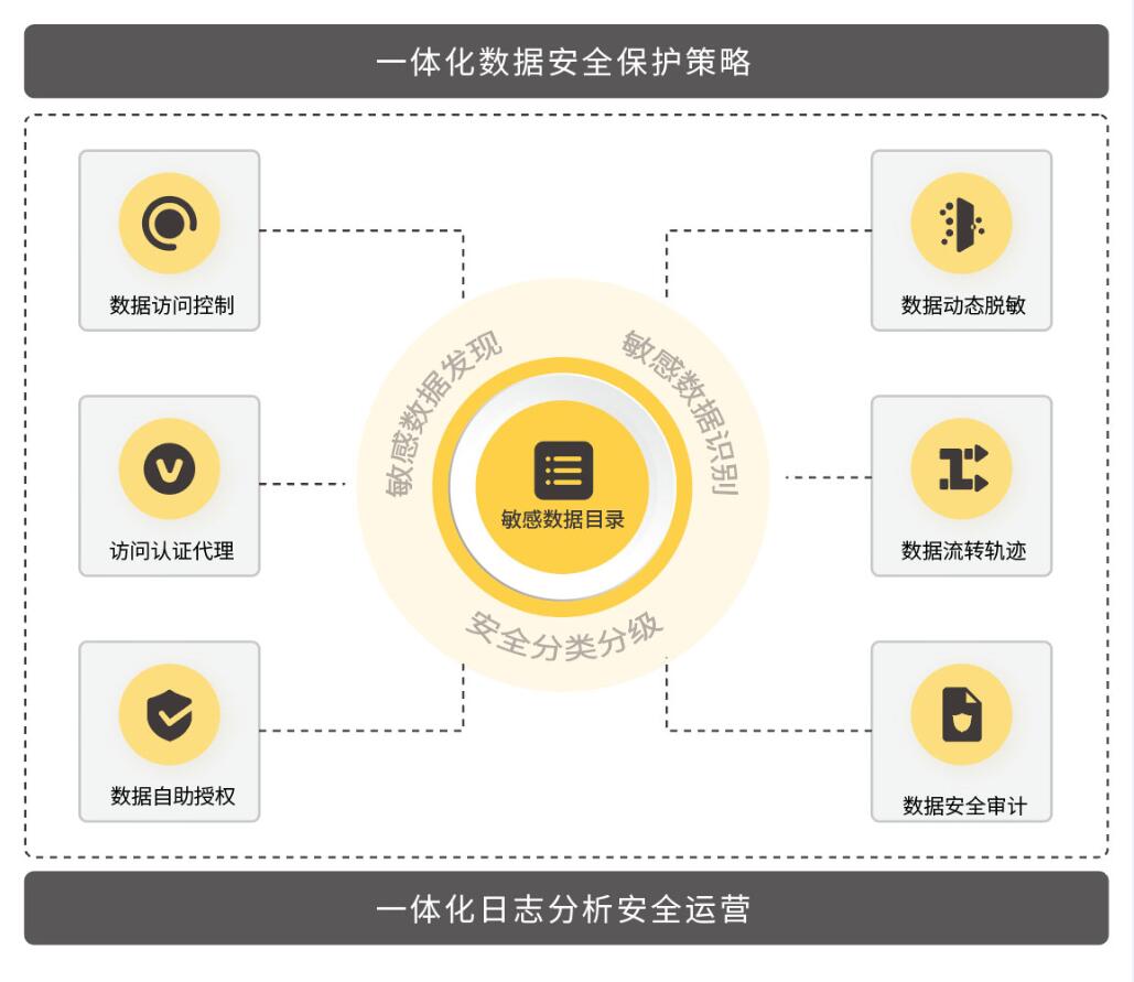 图1:一体化数据安全平台 uDSP 核心能力 敏感数据目录是uDSP核心的产品功能,基于敏感数据智能识别引擎,自动识别和标注敏感数据类型和安全级别,帮助客户从安全视角梳理敏感数据资产,其他产品功能都是围绕敏感数据目录展开的。 图2:核心能力示意 这些数据保护能力通过uDSP产品的一体化数据安全保护策略编排、整合为一个整体,满足各种应用场景下的数据保护需求。同时,uDSP产品的一体化日志审计和安全运营中心,能够根据客户的运营需求定制化分析模型和报表,帮助企业数据安全管理人员及时发现针对重要数据和敏感数据的外部攻击、 内部人员威胁和数据使用异常,开展数据泄露事件的追踪溯源。 赋能安全、数据、合规等部门 一体化数据安全平台uDSP产品的应用可以赋能很多部门。 例如合规部门要做个人信息保护,数据出境安全评估;安全部门对研发运维进行数据库运维的安全管控;数据部门要对数据分析应用进行敏感数据的前端界面展示脱敏,等等。这些安全场景都可以利用原点的一体化数据安全平台uDSP产品去实现。 图3:一体化数据安全平台 uDSP 让数据安全化繁为简 一体化数据安全平台 uDSP ,帮助企业在多云、混合云环境中的敏感数据配置实施统一的数据安全保护策略,实现从敏感数据发现、识别、保护、监督到治理的一体化协同保护措施,满足数据安全与个人信息保护合规要求,简化数据安全管理,让企业的数据更安全,合规更高效。 |