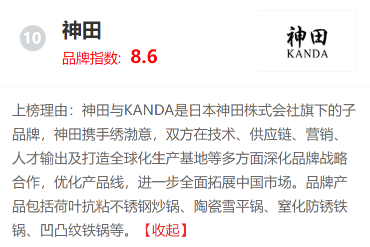 神田的每一口锅都来自于日本最为知名的金属加工生产地——新泻燕三条,新泻是日本著名的金属和厨具产地,是全世界厨具生产水平较高的地区之一。神田品牌进入中国后,结合喜欢大火爆炒的中国烹饪文化和中国消费者生活习惯研发了神田臻钛系列健康钛锅,秉持精益求精的工匠文化,每一口神田钛锅的细节都尽善尽美,让广大消费者乐享健康生活好姿态。
