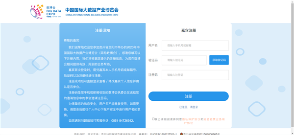 (1)通过中国国际大数据产业博览会官网(www.bigdata-expo.cn)右上角“嘉宾注册”进入嘉宾注册界面。