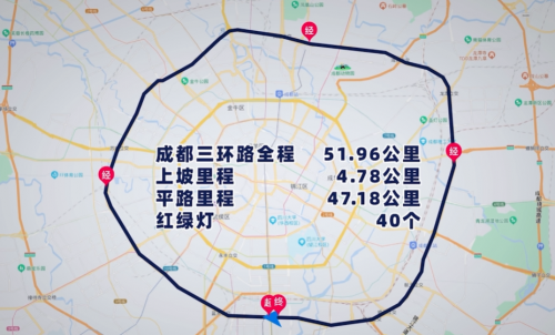 成都的三环是一个非常合适的测试环境,路况很复杂,样本也足够真实。距离也很合适。鲁大师将这个路线命名为“成都三环通勤续航圈”。