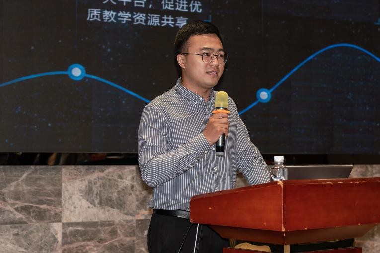 随后,贵阳市花溪区教育培训研究中心电教办公室主任余晓奇作了题为《共同体生态圈下,“双师课堂”助推区域薄弱学校均衡发展探索》的演讲。他分享了花溪区“双师课堂”建设的经验及成果,让在座嘉宾受益匪浅。