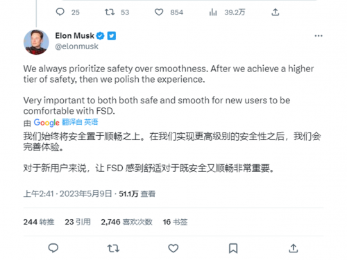 马斯克也意识到了这个问题,今年5月在自己的推特放出风声,特斯拉将计划为北美的所有车主免费提供一个月的FSD全自动驾驶体验套餐,前提是FSD做到高度的顺畅与安全。
