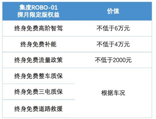 就像集度ROBO-1探月限定版,官方就面向探月版用户免费赠送了包括高阶智能驾驶、充电补能、整车质保、三电质保等诸多用户权益,且是终身享用。其中,高阶智驾的价值不低于6万元,并实现业界首次的“跟人不跟车”模式,即使换车依然能够继续享有该权益。