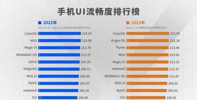 想必不少朋友已经看过了鲁大师刚刚发出的2023年上半年手机系统流畅排行榜,排名前五的分别是ColorOS、OriginOS、Flyme、MIUI以及MagicOS,这五款系统也是当下市面上的主流系统。