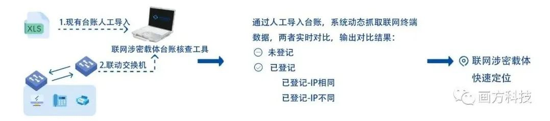 联网涉密载体台账核查工具是一款可用于测评单位检查或单位自检的台账完整性核查工具,通过动态采集形成的实网台账与现有人工台账对比,整理出信息不符的台账,并对其定位的工具。适用于政府、军工、军队、企业等具有涉M网/商M网环境。