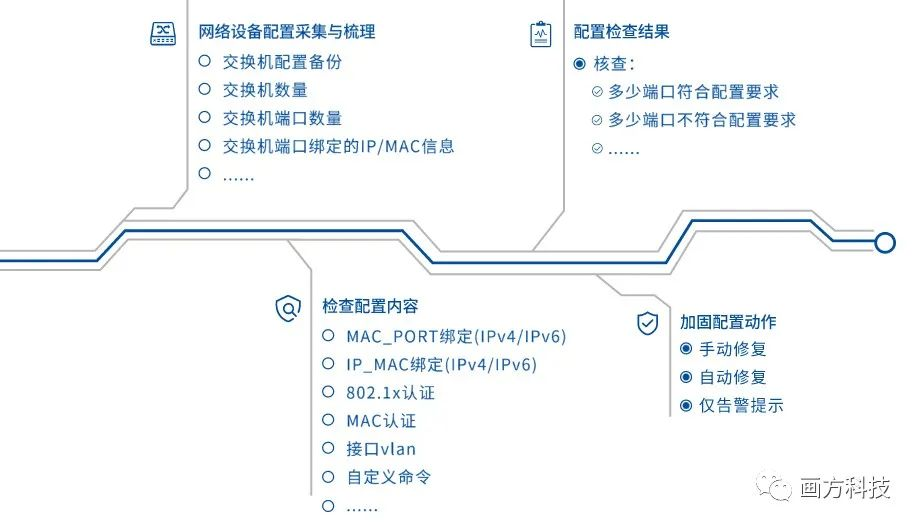 画方安全配置加固系统是一款对用户在网络设备端必须执行的配置命令进行检查的工具类系统,检查网络设备是否完整执行配置命令,对不合规配置告警、统计、修复并审计,提升配置合规率,促进网络安全策略有效落实。