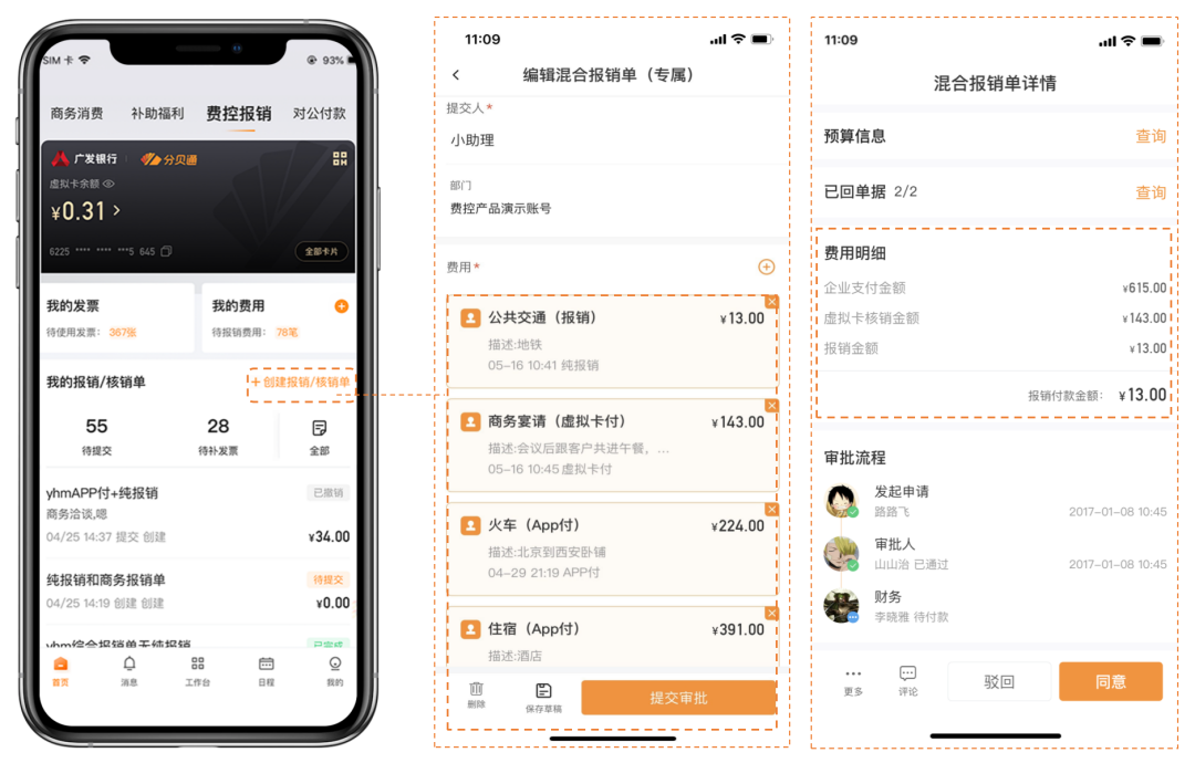 相比于传统线下申请、事后报销的模式,员工可直接在分贝通App端“一站式”完成多场景消费申请,等待审批就好,无需多应用切换。审批通过后员工可直接在App端消费,并由企业统一支付,员工免垫资、免报销。最终,分贝通会按与财务协商好的结账周期提供“大发票”。