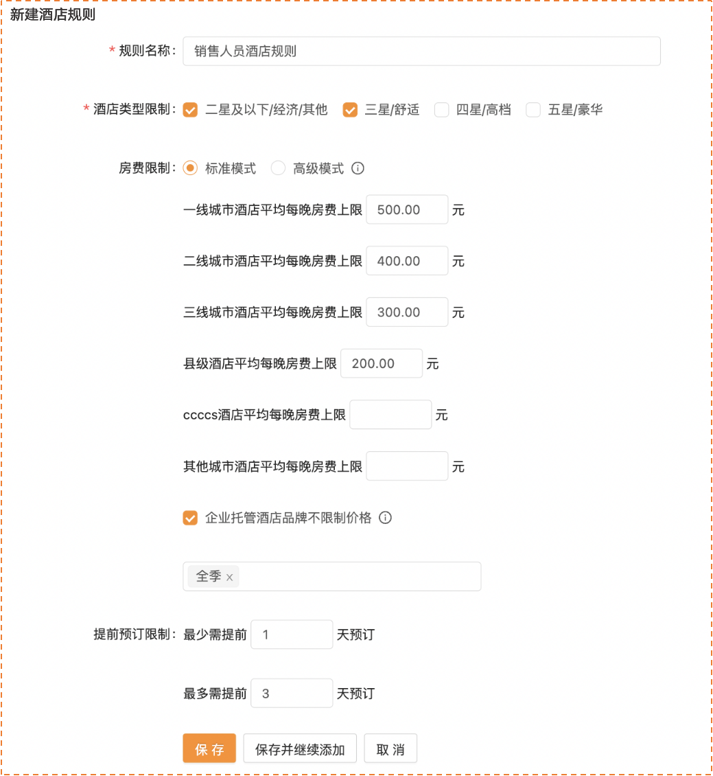 员工对消费规则的了解不细致、预算意识薄弱,导致智能制造企业传统的事后管控基本属于“管了个寂寞”。分贝通于业内率先上线“可配置的事前管控规则”模式,以酒店场景为例。在规则设定方面,企业可通过分贝通严格限定不同对象在酒店星级、价格、多人同住等方面的规则,同时支持设置一、二线及其他城市平均每晚房费上限,让规则配置更细化,也更灵活。