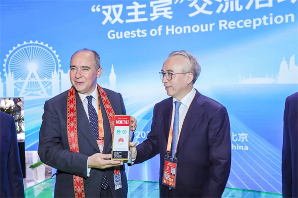 在贵州展区,贵州方向英方献上具有贵州少数民族特色的织锦彩带,并邀请多米尼克·约翰逊(Dominic Johnson)一行观看贵州“村超”足球互动表演,品尝“茅台鸡尾酒”,向英方介绍华为云等贵州参展企业的发展成果。