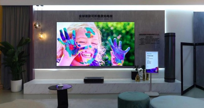 #全球首款可折叠激光电视发布#、#海信激光电视#、#海信全球首发120英寸可折叠激光电视#