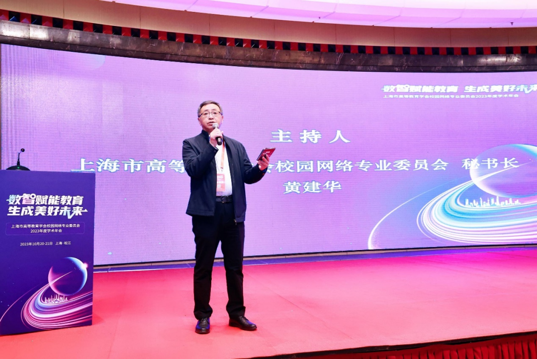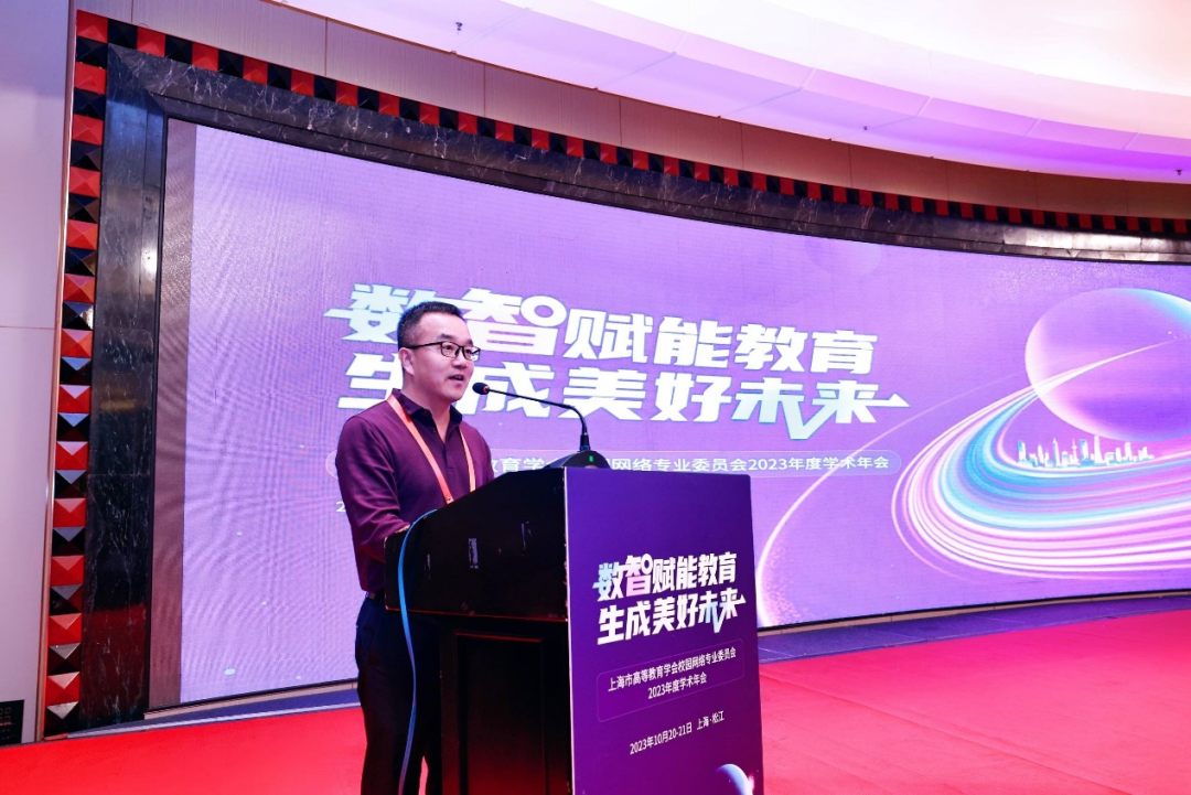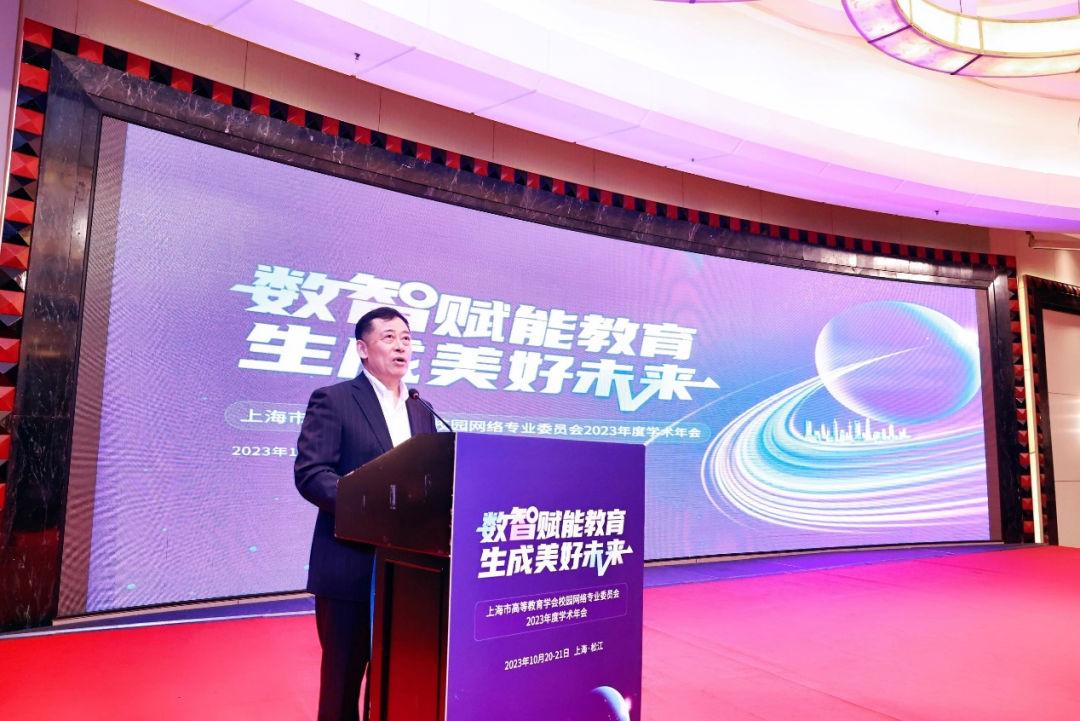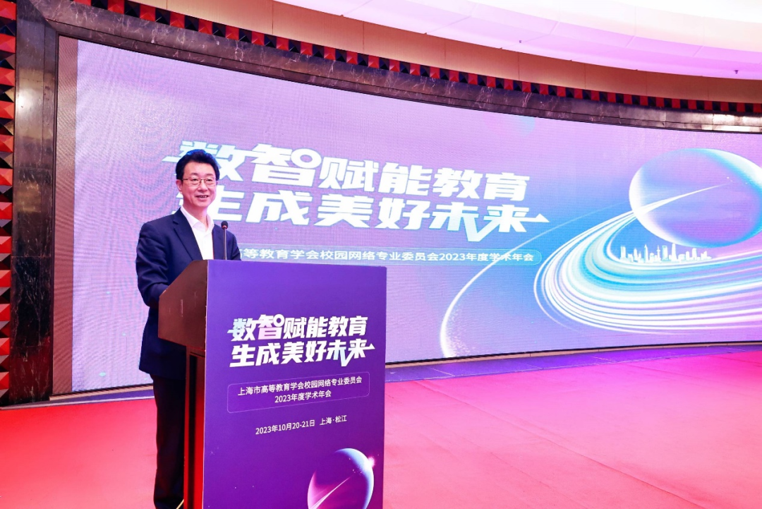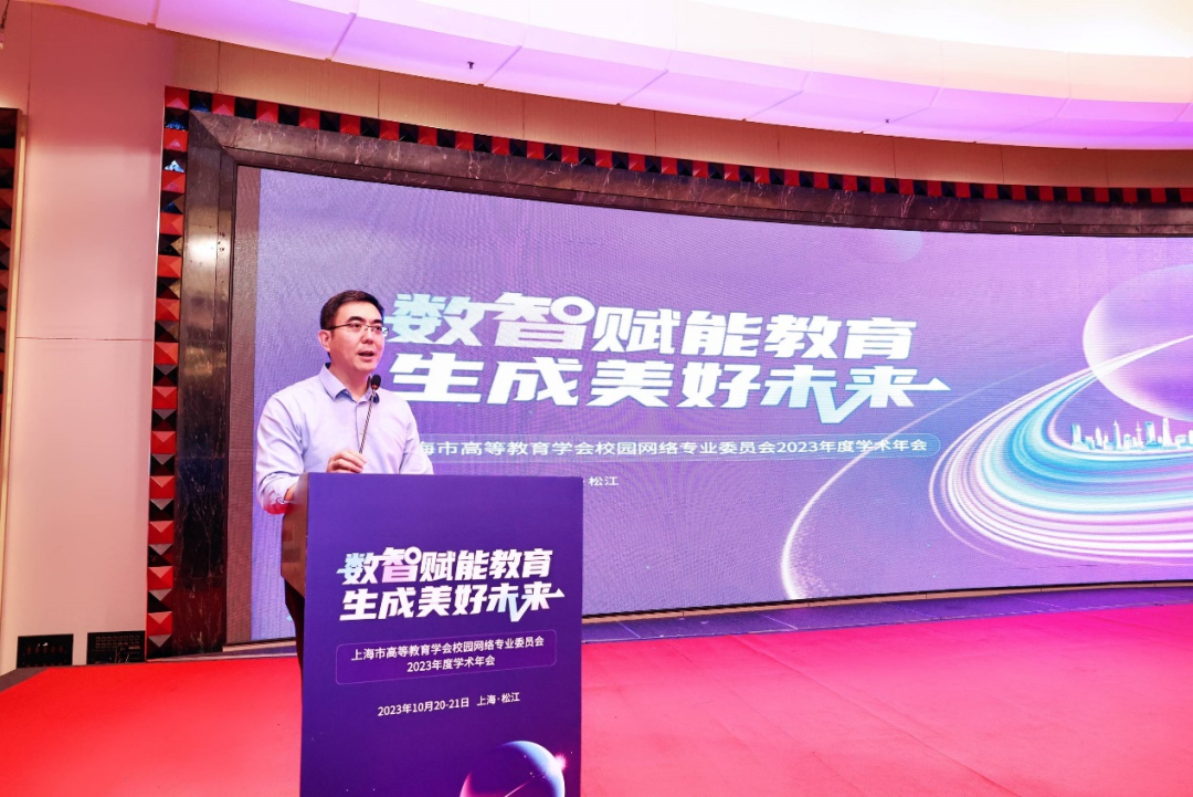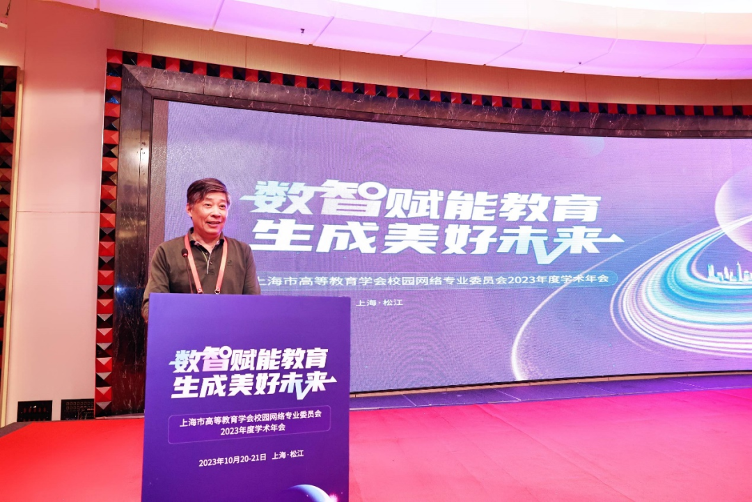 上海市高等教育学会校园网络专业委员会主任顾一众对参会嘉宾表示了热烈的欢迎,感谢长期以来对于专委会教育信息化工作给予支持的朋友,寄语网络专委会在教育数字化转型、数智赋能教育等方面当中发挥更大的引领作用。