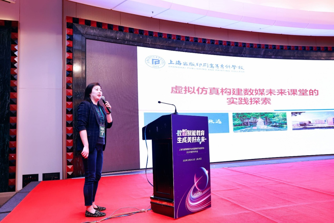 上海出版印刷高等专科学校信息化办公室主任杨丽分享了“虚拟仿真构建数媒未来课堂的实践探索”优秀案例。她指出,以上海出版印刷高等专科学校为例,通过使用虚拟现实(VR)、增强现实(AR)、模拟技术等工具,创造更具互动性、沉浸感和个性化的学习环境。这一实践探索涉及到教育政策、技术装备开发和教育资源的整合。这一领域的研究有助于教育体系更好地适应数字时代,并提供更具吸引力和有效性的学习体验。