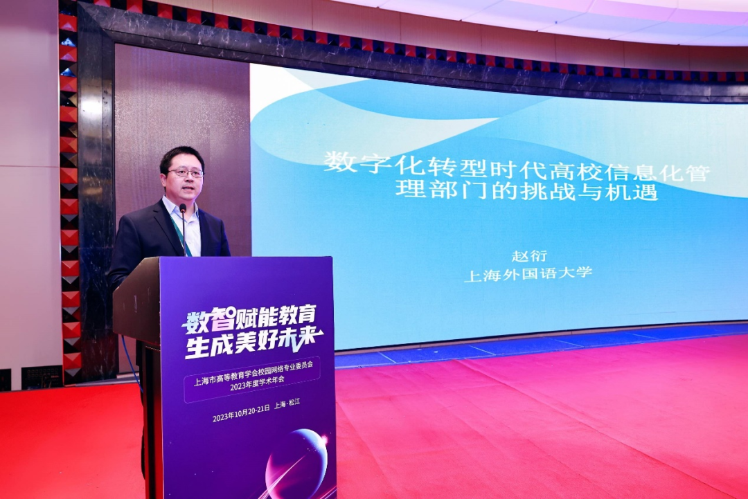 当前,人类社会加速步入信息文明时代。以云计算、大数据、物联网、人工智能为代表的新科技不断改变着人类思维、生产、生活、学习方式。上海外国语大学党委常委、副校长查明建在致辞中指出,以ChatGPT为代表的生成式人工智能所涌现出的强大类人类智能更是引爆全球,拓展了全社会数字化转型的多样性和无限可能性。上海外国语大学“翻译有道”等国家级、上海市线上一流本科课程领衔的50门慕课,2022年作为首批课程登录国家智慧教育平台,并以“智慧高教”平台开通为契机,紧抓教育数字化转型机遇,不断探索教育理念与模式、教学内容与方法的改革创新。同时,上海外国语大学也积极探索数智驱动的管理数字化转型,用数智技术赋能教育管理。上海外国语大学“数据中台系统”在学校管理和疫情防控中起到重要作用;上海外国语大学“个性化信息门户”上线以来,显著提升了师生的使用体验;当前,学校正在积极探索人工智能在校园管理中的深度应用。