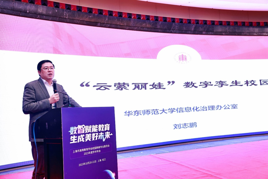 华东师范大学信息化治理办公室主任刘志鹏分享了“云萦丽娃”数字孪生校园优秀案例。他提出,以“云萦丽娃”数字孪生校园平台,打造高水平线上校园文化载体,实现全方位沉浸式云游校园。该平台将3D全景、AR、VR、3D扫描、虚拟现实等技术因地制宜地与校园文化、学校历史深度融合,在线上再建一个可随时云游的孪生3D校园,通过“一筑一品”“丽娃八景”“一草一木”传承校园文化,展现校园新貌,传播师大之爱。