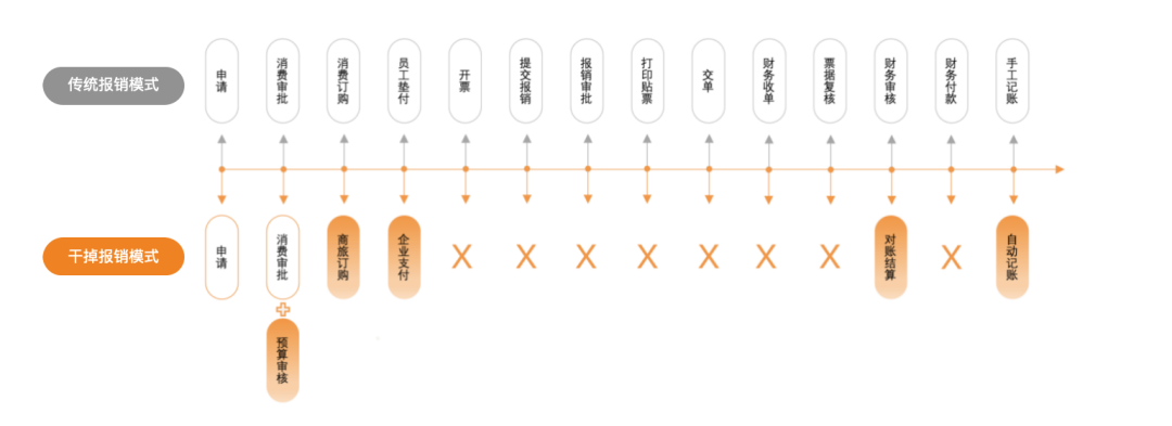 传统报销模式与干掉报销模式流程对比