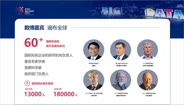 数博会是全球首个以大数据为主题的国家级国际性博览会,作为本次展览的核心内容,展台以图文和视频的形式回顾了九届数博会的精彩历程。展示内容显示,数博会自2015年首次举办以来,得到了党中央、国务院的关心支持,习近平总书记2018、2019连续两年致贺信。历届数博会也得到国内外业界的广泛关注和参与,数博嘉宾遍布全球,60余个国家和地区数万名嘉宾参与其中。现场观众由2015年的1.3万人增加至2023年的18万人。数博传播国内外影响广泛,每届实现海内外数十亿阅读量和曝光量。数博成果取得实效,九年来共计签约项目金额超过3000亿元,三大运营商数据中心、金融818等一批大项目、好项目落地实施,苹果、腾讯、京东等一批头部企业扎根贵州、贵阳。