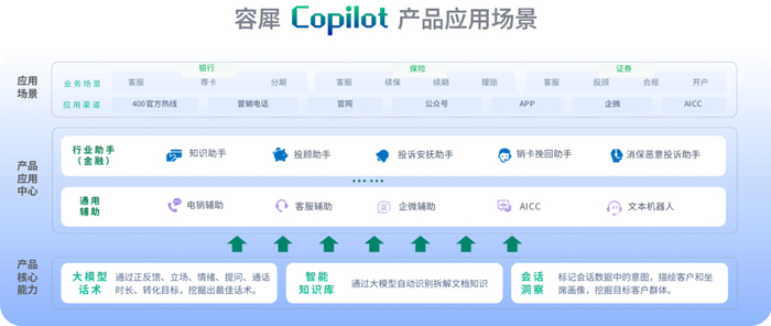 容犀Copilot集“全链路数据+大小模型+分析洞察”于一体,在每一次的服务与营销场景中,实时根据企业与客户产生的会话数据与业务数据,结合“聚焦客户联络全场景的大小模型”与“会话洞察”能力,产出最佳沟通策略,打造销售和客服的实时AI领航员。