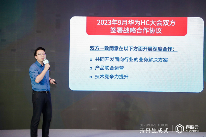 现场,北京华为云CTO丁晨也带来了与容联云合作的现状与展望,在基于9月份双方签订的战略合作协议之上达成深度合作共识,结合华为5G、大数据、鲲鹏、昇腾、大模型等前沿技术,持续创新行业大模型和场景化应用,打造云上客服联合解决方案。